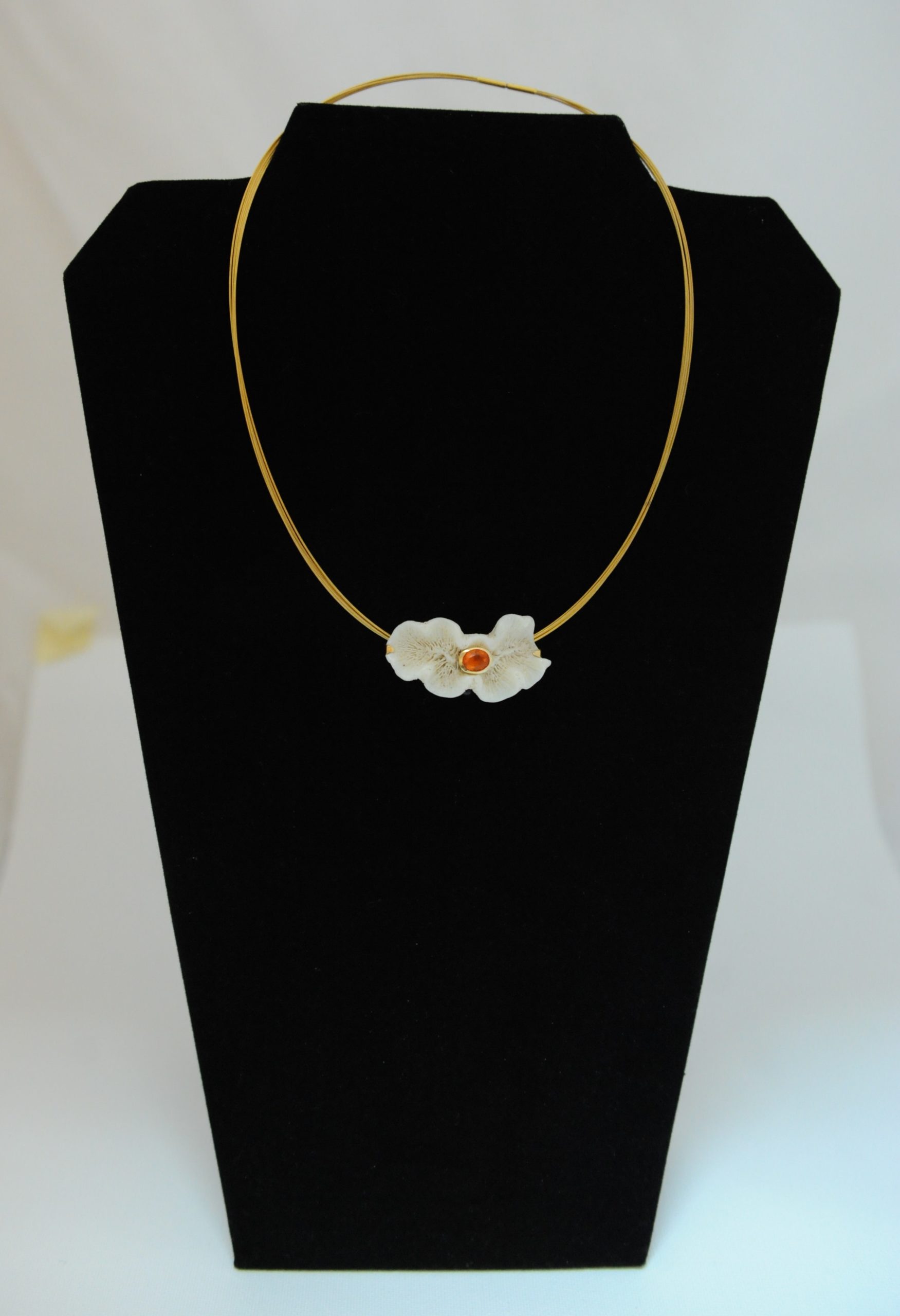 Korallenanhänger mit Feueropal in 18 Karat Goldfassung.
