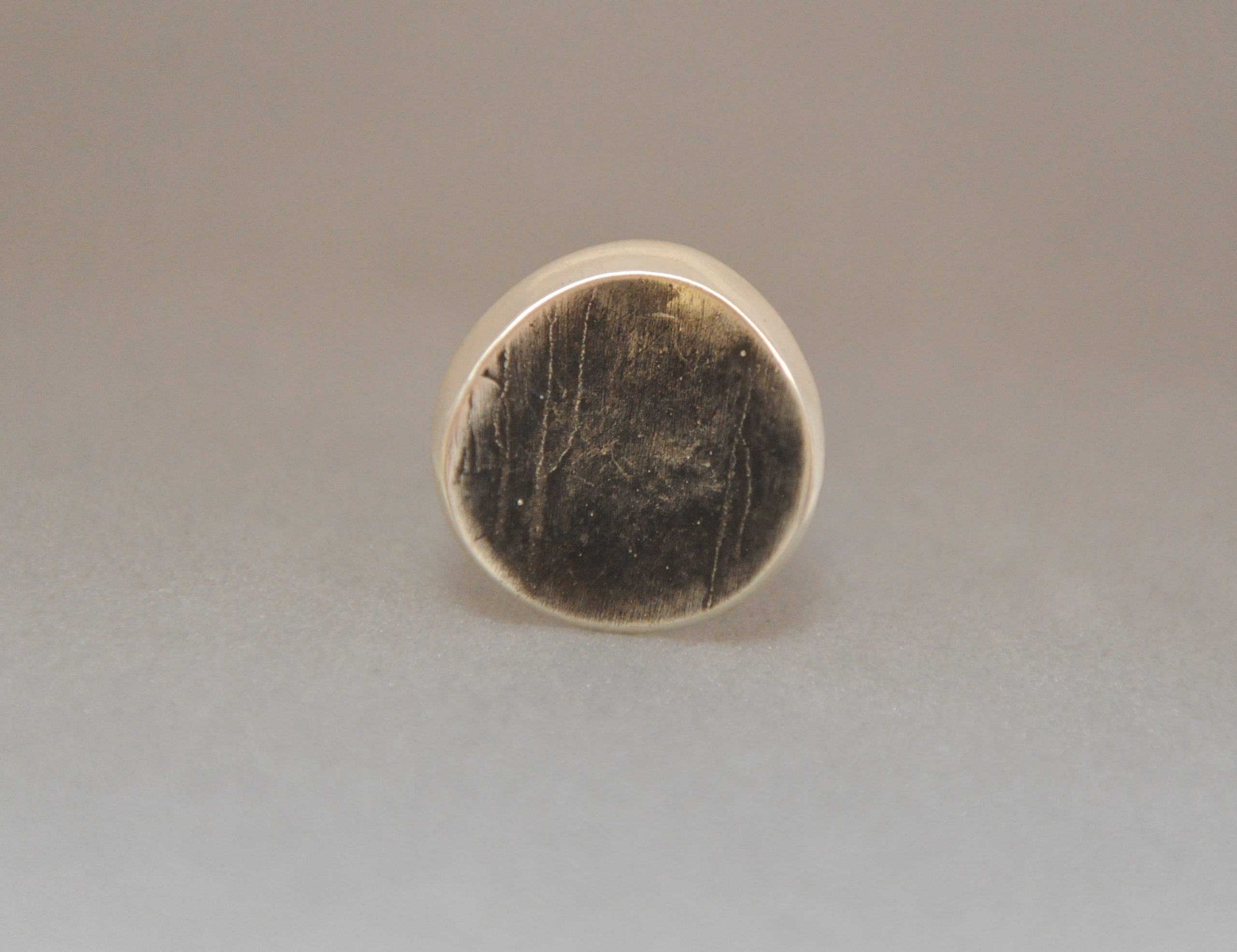 Handgefertigte Scheibe aus Silber mit Gusshaut.