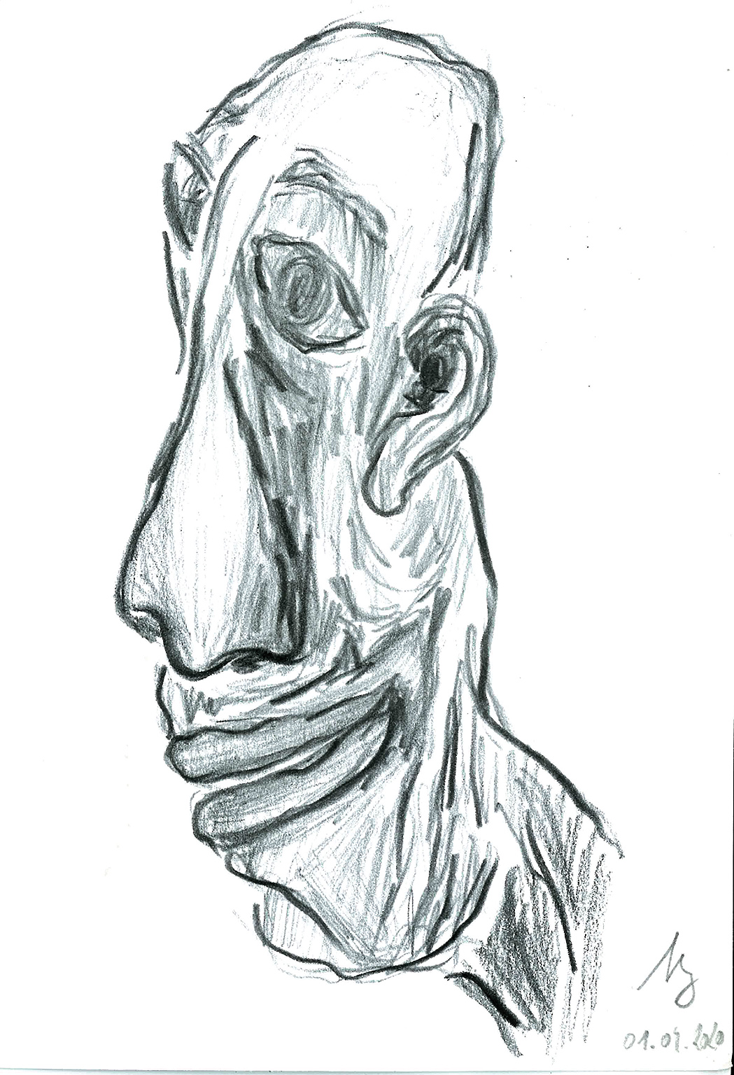 mit diesen titel bezeichne ich meine aktuelle serie von kopfdartellung. karikaturenhaft, abstrakt, realistisch, kubistisch bis surrealistisch schaffen diese bleistiftzeichnung kreaturen, köpfe bzw. gesichter auf verschiedenen kartons und papieren und in verschiedenen formaten – meist aber 14,5 x 11 cm. der ausdruck der gesichter ist schwer zuordnenbar und ergibt sich aus der tätigkeit des zeichnens. es kommt mehr das unterbewußtsein zum ausdruck als das bewußte. zielstrebig und kontinurlich läßt nur die lust am zeichnen, an der kreativität täglich ein bis zwei zeichnungen entstehen. nicht die vorstellung an eine fertige zeichnung motiviert mich, sondern die manuelle tätigkeit, der schlichte bleistiftstrich, welcher zu papier gebracht wird, welcher aus dem nichts wesen bzw. kreaturen schafft, die bis dato nicht existiert haben. die darauf warten vom betrachter, durch sein betrachten zum leben erweckt zu werden. deren gemütszustand durch ihn gedeutet und entdeckt, und durch das erkennen, analysieren und beschreiben bewußt gemacht wird. diese komunikation zwischen der portraitkarikatur und deren betrachter ist das salz in der suppe und das wesen bzw. der sinn deren existenz. getrieben vom vergnügen mit einen einfachen bleistiftstrich zu modelieren, als würde man mit einen material plastisch, dreidimensional arbeiten.